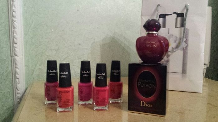 Sposine il mio fm è parrucchiere e questo week end è stato al cosmoprof a Bologna! Io ero a casa cn la febbre a 39 e mezzo! Guardate ke mi ha portato! Tanti smalti e il profumo ke adoro e desidero da tanto! È stato dolcissimo! Lo indosserò il...