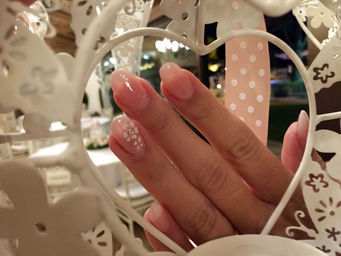 Forse l'unica cosa che non ho scelto io sono le unghie, le ha fatte mia cognata, sono a mandorla e invece del classico french abbiamo scelto un degrade' con l'applicazione di un fiore