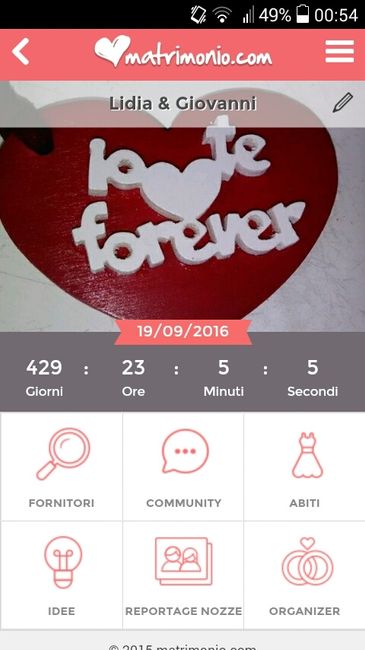 Buon pomeriggio a tutte le sposine e future sposine di matrimonio.com Quanto manca alle vostre nozze? E a che punto siete con i preparativi? Io mi sposerò il 9 luglio del 2016... Mancano quindi ancora 358 giorni Spero passino in fretta!!!...