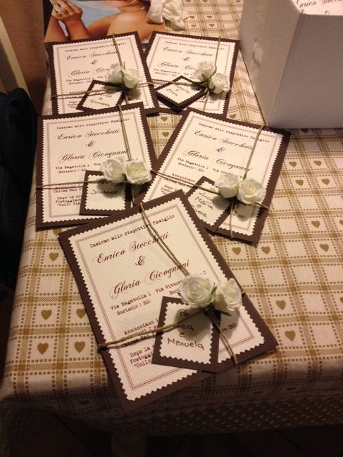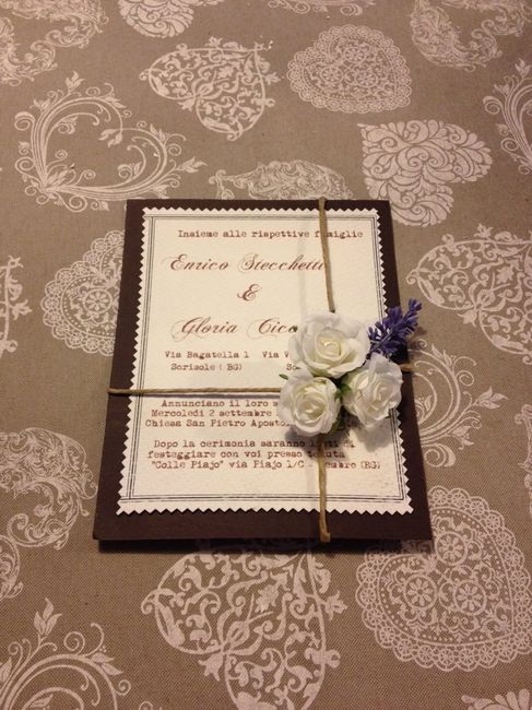 Eccole che prendono forma le mie partecipazioni... A casa con l influenza rendo produttivo il tempo.... E manca ancora il rametto di lavanda essiccata da inserire tra le roselline , ma il linea di massima il risultato gia si capisce.... Che vi...