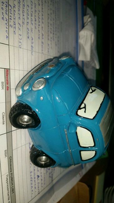 Buonasera care sposine....ho bisogno del vostro aiuto ..allora il tema del nostro matrimonio sarà le macchine d epoca xche il mio Fm adora le vechie 500...poi guardando su vari siti web x delle bomboniere segnaposti ecc abbiamo trovato un salvadanaio...
