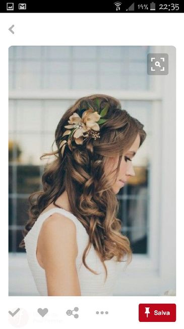 Ciao raagzze, ho i capelli lunghi e castani,tendenti al riccio.Non amo le acconciature con i capelli troppo tirati o alti. Avevo pensato di farli completamente sciolti e mossi ma il mio parrucchiere mi diceva che un minimo di "raccolto" deve esserci...