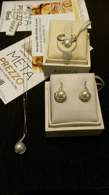 Io indossero' una collana di perle e degli orecchini di perle coordinati che mi ha regalato Fm due anni fa. Mai messi... li ho tenuti in cassaforte in attesa del Big day. Non vedo l'ora... sono lì che aspettano di essere indossati