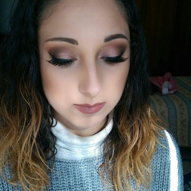 Ragazze che ne pensate?? Ovviamente nn guardate le sopracciglia ma devo farle lunedì ....mi ha truccata mia cognata di 20 anni!!! Dobbiamo sicuramente comprare prodotti che vanno bene x me...fondotinta e correttore....x ora ci siamo adeguate a...