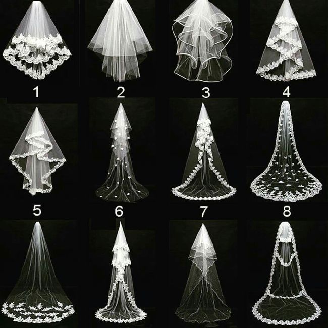 Sposine buon pomeriggio,volevo condividere con voi questa immagine di diversi tipi di veli. Quale vi piace? Io adoro il 5 il 7 e il 10. Lo avete già acquistato? Quale avete scelto e se avete provato più di un modello di velo quali sono le vostre...
