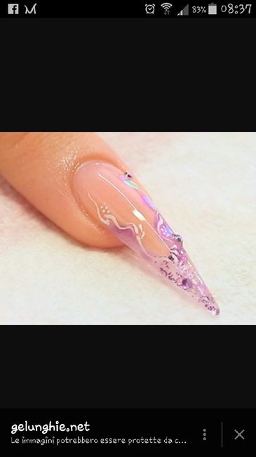 Ciao ragazze manca ancora tanto x il mio matrimonio ...ma essendo io un estetista mondiale cominciare a provare qualcosa ... che ne dite delle unghie così ... questa è sola la prima prova che mi faccio ????
