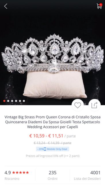Ciao a tutte.... So che molte di voi mi diranno che è roba da bambine..da carnevale...ecc ecc. Ma io quando mi sposerò vorrei tanto indossare una corona ❤ naturalmente molto piccola e discreta! Mica un lampadario l'ho sempre sognato perché mi...