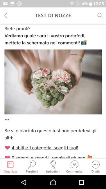 Ultimo screenshot per scoprire un'altro dettaglio importante delle vostre nozze! Siete pronti? Vediamo quale sarà il vostro portafedi, mettete la schermata nei commenti! 📸 *** Se vi è piaciuto questo test non perdetevi gli altri: ❤️ 4 abiti e 1...