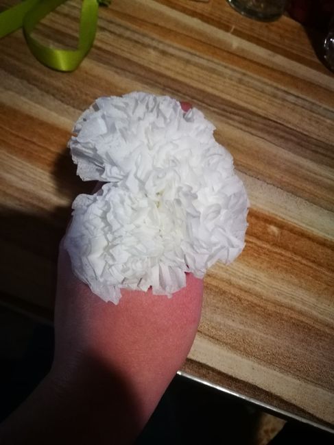 Oggi vi mostro come fare dei semplici fiorellini, io ci ho riempito gli spazzi vuoti nel secondo bouquet.... Allora, materiale, semplici tovaglioli di carta, filo di ferro, e forbici.... Tagliamo in tre il tovagliolo.... Pieghiamo a ventaglio i pezzi...