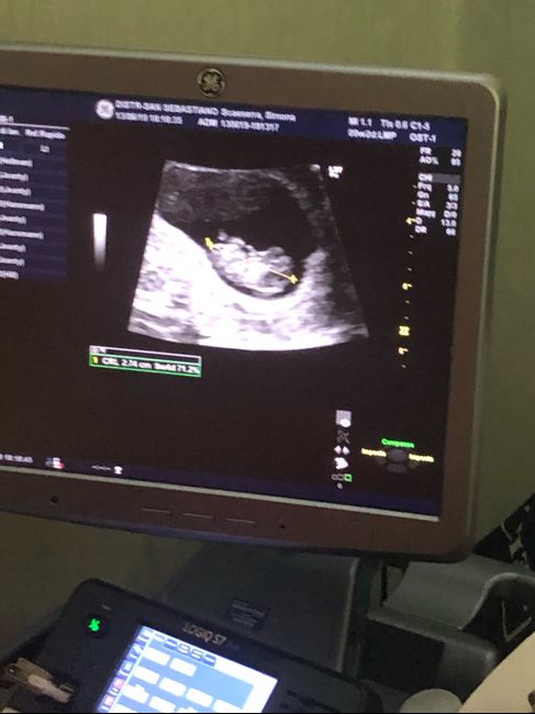 2499 giorni faCiao ragazze questo/a è il mio/a fagiolino/a di 2.74 cm, ho un piccolo distacco del polo inferiore della camera gestazionale di 1cm, in foto non si vede ma c’è.. il dottore non mi ha fatta sentire il battito perché mi ha detto che me lo fa sentire...