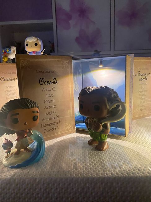 Abbiamo provato il nostro tableau… va ancora sistemato con le alzate in modo che tutti i libri con i personaggi si vedono e vanno aggiunte altri piccoli dettagli! Dalle foto non rende tanto ma dal vivo è stupendo!