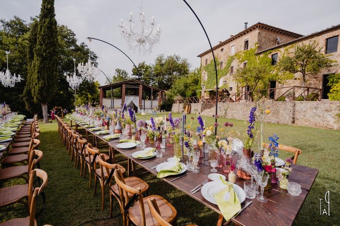 Ciao a tutt*! Ci sposeremo a giugno prossimo in un agriturismo in Toscana, e lo stile del ricevimento sarà country chic (più o meno 😅)... Per intenderci fiori di campo dai colori tenui, spighe di grano, oggetti vintage. Utilizzeremo un tavolo...