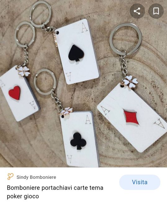 Buongiorno! Nonostante ci voglia ancora un po', sto cercando di capire come fare dei segna posto. Vorrei che il tema del matrimonio fosse il 'gioco da tavolo' o 'gioco di ruolo', passione in comune con la controparte. Ad ora so che come bomboniera...