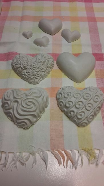 Ciao ragazze vi posto le foto dei segnaposto che ho fatto oggi...nn sono sicura della forma volevo i cuori...ma secondo voi sn troppo grossi? Secondo me e il mio ragazzo si...