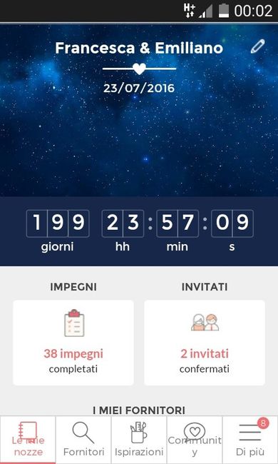 Ciao ragazze!!Buongiorno a tutte e buona epifania! ^-^Premetto che questo è un topic di pura curiosità: con che colori e con quale immagine avete personalizzato la pagina principale della app con il countdown???Vi và di fare uno screenshot e postare...