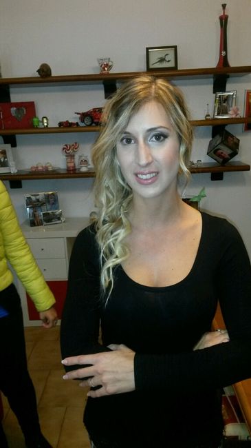 Ciao a tutte!! Oggi ho fatto la prova trucco e acconciatura!! Che ne pensate? Il trucco è solo da un lato e l'effetto in viso è un po' pallido in quanto avevo una luce fredda puntata in faccia!!
