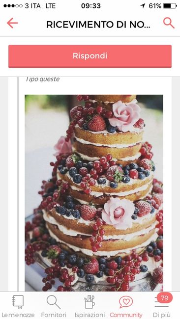 Ciao ragazze! Vorrei chiedervi che torta avete scelto per il vostro giorno speciale? Tonda, quadrata o a più piani? La nostra è prevista dal menù e sarà una millefoglie con frutti di bosco (non vedo l'ora di mangiarla) ad un piano solo. Per ora...
