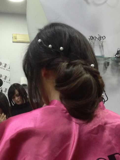 Care oggi sono tornata dal parrucchiere, mi ha fatto altre tre prove acconciatura. Sono tutte e tre molto belle e io sono propensa a fare quella con i capelli raccolti (e la fermaglia con i fiori) ma con aggiunta di piccoli fiorellini bianchi lungo...