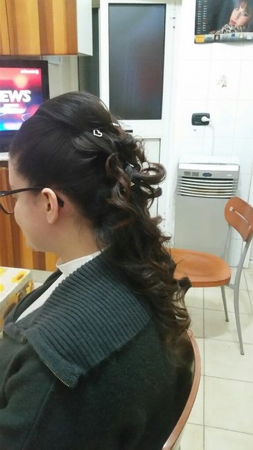 Da premettere ke il mio abito davanti e a collarino......ekko il xke ' di questa acconciatura....e nei capelli avrò i punto luce ke mi darà l'atelier....io x vedere il tutto o messo delle mie cose....
