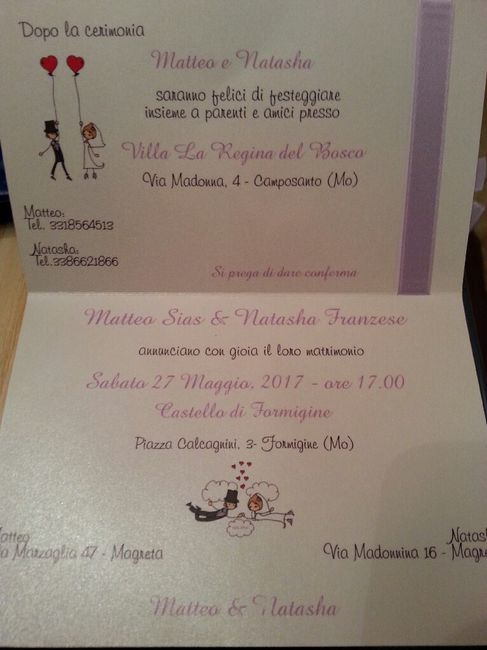 3370 giorni faBuongiorno sposine!!Ieri ho ritirato la bozza dellle partecipazioni, non volevamo qualcosa di troppo classico ma qualcosa di giovanile e colorato visto che siamo due ragazzi giovani. Io sono contenta del risultato finale ma quando le ho fatte vedere...