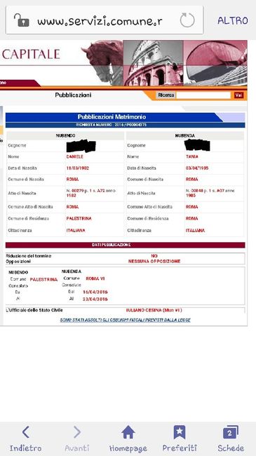 Ciao ragazze!! Stamattina siamo finalmente andati a firmare in comune!! 10 minuti circa e poi ognuno alla propria scrivania in ufficio.. È emozionante vedere i propri nomi in più oggi pomeriggio andrò con la mia mamma a vedere per il suo...