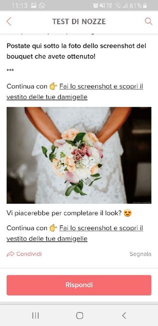 Chi ha lo scatto più veloce e riesce a beccare il bouquet che più le piace? Postate qui sotto la foto dello screenshot del bouquet che avete ottenuto! *** Continua con 👉 Fai lo screenshot e scopri il vestito delle tue damigelle Vi...