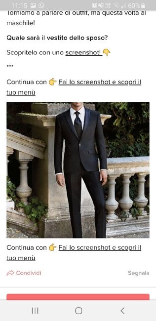 Torniamo a parlare di outfit, ma questa volta al maschile! Quale sarà il vestito dello sposo? Scopritelo con uno screenshot! 👇 *** Continua con 👉 Fai lo screenshot e scopri il tuo menù Continua con 👉 Fai lo screenshot e scopri il tuo menù