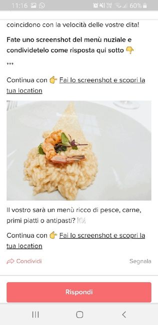 Un gioco divertente per capire se i vostri gusti coincidono con la velocità delle vostre dita! Fate uno screenshot del menù nuziale e condividetelo come risposta qui sotto 👇 *** Continua con 👉 Fai lo screenshot e scopri la tua location Il vostro...