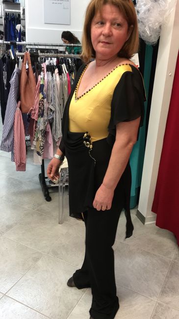 Mia mamma ha preso l’abito.. odia i vestiti, quindi ha preso una tuta; ama il nero .. ho cercato in tutti i modi di sviarla ma nulla!!! Almeno c’è un po’ di giallo ..la parte di sopra è da allargare.. del resto gli calza a pennello! Che dite? Il...