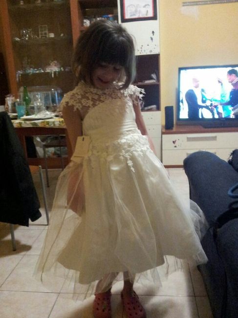 Ecco ragazze, come da titolo, è arrivato l' abitino della mia nipotina! Diciamo che sono abbastanza soddisfatta, anche se la taglia non è proprio quella che avevo richiesto (perche la tg 5 era circonferenza vita 61 e minnipote è 60,5 eppure si vede...