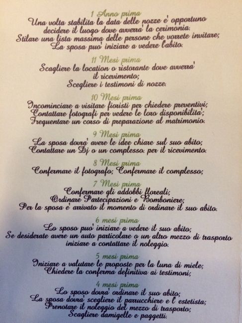 Buongiorno sposine, ieri ad una fiera degli sposi ho trovato questa tabella di marcia e volevo condividerla con voi....secondo me è molto utile