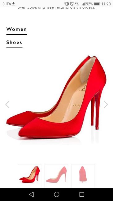 Buongiorno sposine, ho fatto la prima prova del mio abito da sposa, il tema del mio matrimonio è il rosso amore e voglio mettere sotto il vestito le scarpe rosse, avete dei consigli? Con un tacco non più alto di 8 cm 😊😍