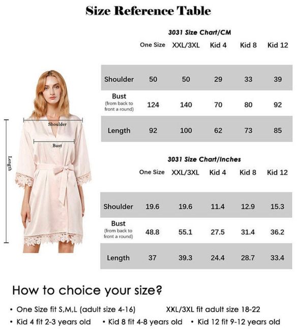 Ciao sposine! Mi sono innamorata di questa vestaglia in raso su Etsy. La cercavo esattamente in raso, con del pizzo crochet sulle maniche e sul retro personalizzabile, su Aliexpress non ho trovato nulla di simile. Sono però in dubbio sulla taglia e...