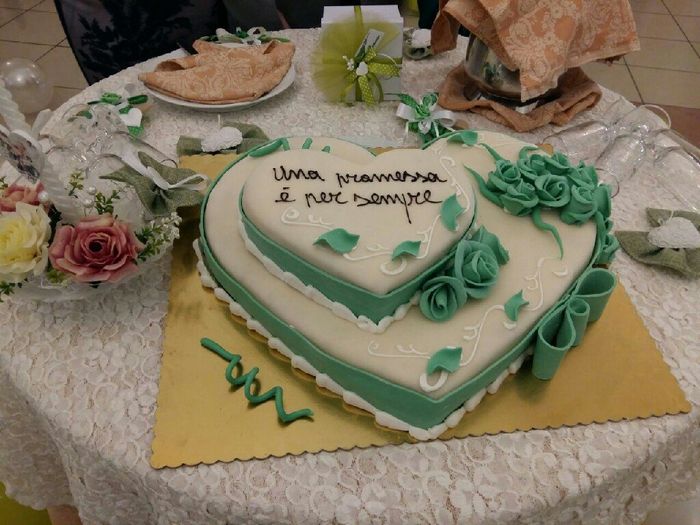 Ciao a tutte ragazze.. giorno 19 maggio faremo la promessa al comune.. qualcuna di voi ha ordinato una torta particolare? Potete mandarmi qualche foto? Avevo pensato ad una torta a forma di cuore verde con su scritto promessa di matrimonio ma non...