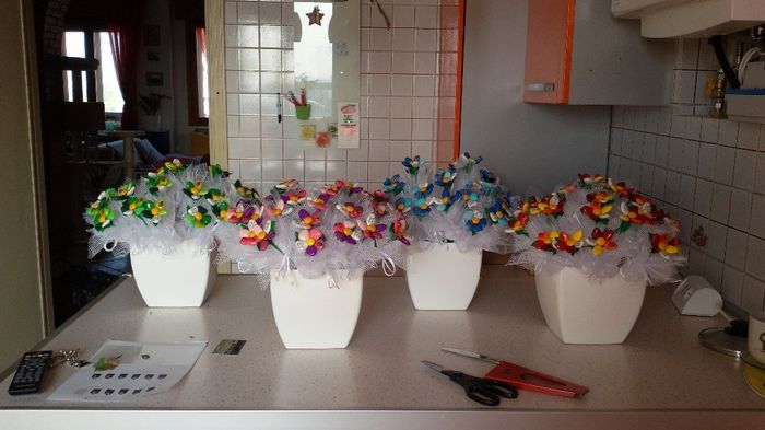 I miei centrotavola Dettaglio Questo è per dimostrare che con poco soldi (ogni centrotavola è costato circa 3€) e tanta pazienza si possono fare cose carine. E la soddisfazione è davvero ripagante.
