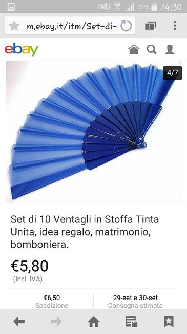Ciao a tutte!! Come segnaposto vorrei prendere questi ventagli blu essendo il colore del nostro matrimonio naturalmente poi ci scriverò sopra i nostri nomi e la data....ma la mia domanda è.. devo mettere solo questi o aggiungere un sacchetto con dei...