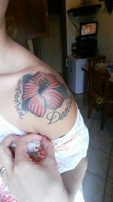 Ciao care sposine! Mi chiedevo...quante di voi hanno tatuaggi? E quanti se ne vedranno quel giorno? Fatemi vedere i vostri tatuaggi se vi va! Inizio io..ho 5 tatuaggi di cui se ne vedranno 4..uno è sulla caviglia (la rosa), uno è sulla spalla (la...