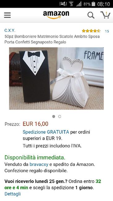 Che bellooo arrivati in 3 giorni....questi saranno i confetti x i segnaposti....appena mi arrivano anche quelli vi mando una fotina....
