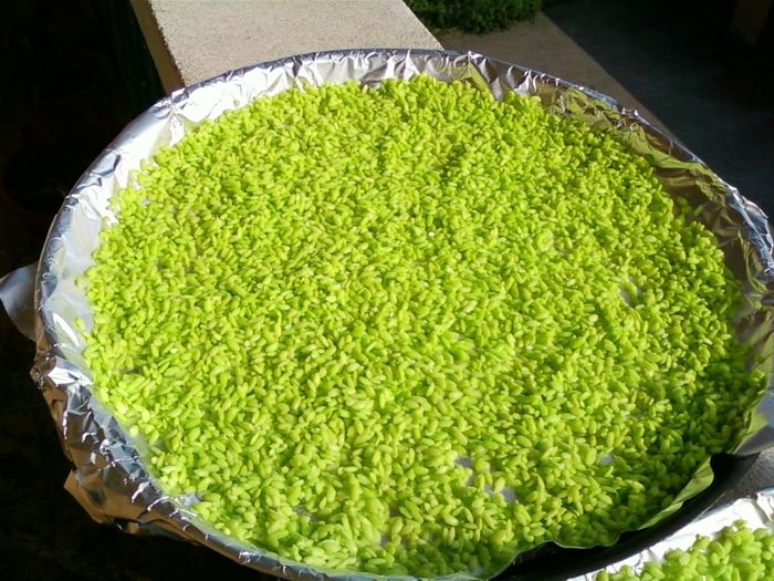 ieri ho colorato 1 kg di riso con la carta crespa è bellissimo!!Adesso è messo fuori ad asciugare al sole ragazze in una giornata il riso si è asciugato grazie ai 26°di sole è venuto spettacolare... Ricordatevi di mettere i guanti perchè...