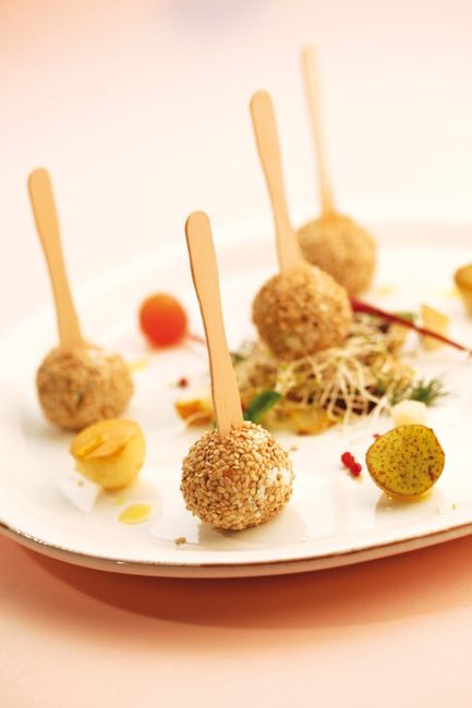 Ingredienti per 4 persone: 80 gr. di Farinpiù Multicereali, 150 gr. di ricotta magra, 1 pera abate, semi di sesamo, aneto, menta, olio extra vergine d'oliva, mezzo limone, sale e pepe q.b.
