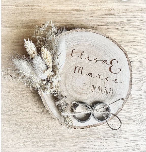 Ho bisogno di un consiglio: sto creando il mio portafedi molto rustico ( ci sposeremo in vigna), come lo completereste? Un fiore bianco? Il fiocco verde che ricorda le partecipazioni? Un decoro a penna come la scritta? Non so decidermi...