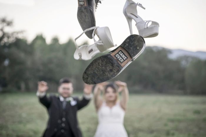 Procediamo con il nostro test sulle situazioni nuziali... un po' discutibili! Che ne pensi del classico adesivo con su scritto Game Over incollato alla suola delle scarpe (solitamente dello sposo)? Divertente o patetico? Sei un fan o un hater? 😅 Vota...