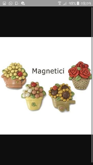 Ciao ragazze, ho un idea per le bomboniere ma non vorrei che si troppo spoglia anche se per me sono abbastanza inutili Vorrei fare delle semplici calamite con i nostri nomi e la data del matrimonio , un oggetto che bene o male tutti attaccano.. Che...