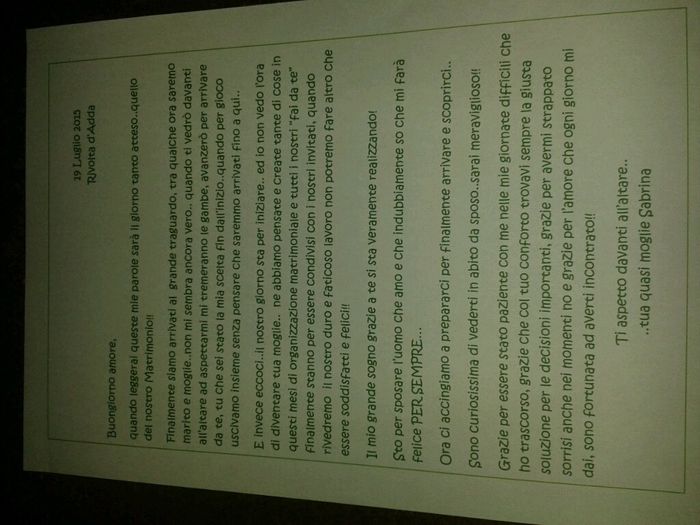 Ho pensato proprio a tutto!!! Questa la metterò in una busta e la lascerò alla mia futura suocera da consegnare al mio quasi maritino quella mattina stessa x fargli una sorpresa!!