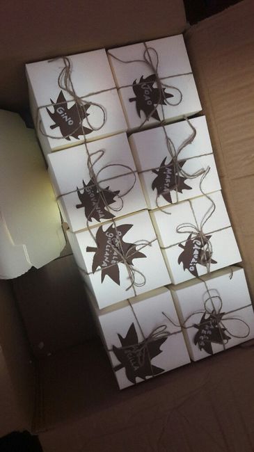 3324 giorni faA meno due mesi, ho il voltastomaco del fai da te: 140 bomboniere, 50 scatoline non invitati, 40 scatoline di ringraziamento per agenzia di viaggio, guestbook, 115 segnaposto, 9 bomboniere genitori e testimoni, 100 coni porta riso, 1 portafedi, 40...