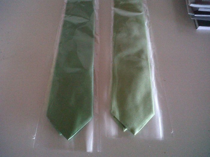 Finalmente ieri sera ho comprato le cravatte verdi, colore tema delle nozze, che saranno indossate da i 2 testimoni sposo, da mio papà e da mio fratello.....mio papà, dopo essersi lamentato per il colore, ha optato per quella più scura, mentre mio...