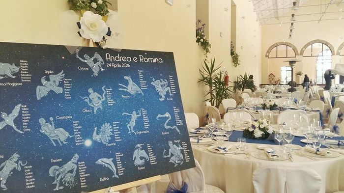 Ciao Ragazze! abbiamo scelto il tema costellazioni e volevo avere un consiglio da voi. Come fare il tableu? il mio fm vorrebbe fare un pannello in forex sfumato di blu (cielo stellato praticamente) e mettere i cartoncini chiari con i nomi dei tavoli...