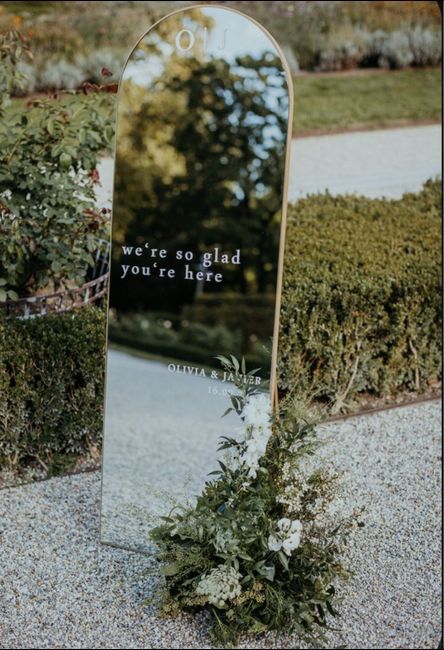 Buongiorno, che ne pensate dello specchio che si usa per dare il benvenuto agli ospiti? Noi faremo fare uno specchio 75x60 da mettere su un cavalletto e siccome poi lo appenderò in casa ho deciso di non far mettere benvenuti ma una frase, i nostri...