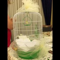 4795 giorni faCiao a tutte.. Ho trovato su internet varie versioni per le gabbiette portabusta.. Ho trovato anche le torte portabusta, ma non mi piacciono molto, preferisco di gran lunga le gabbiette. Ho trovato questa E.. Leggendo, c'è dentro un uccellino vero......