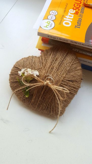 Carissime sposine mie, a 10 giorni dal matrimonio che mi unisce al mio adorato e a -8 dal mio concorso ministeriale che forse mi stabilizzerà a vita... per la regola tutto insieme!!! Ecco il portafedi fatto da me con cartone e tantissima corda! Che...